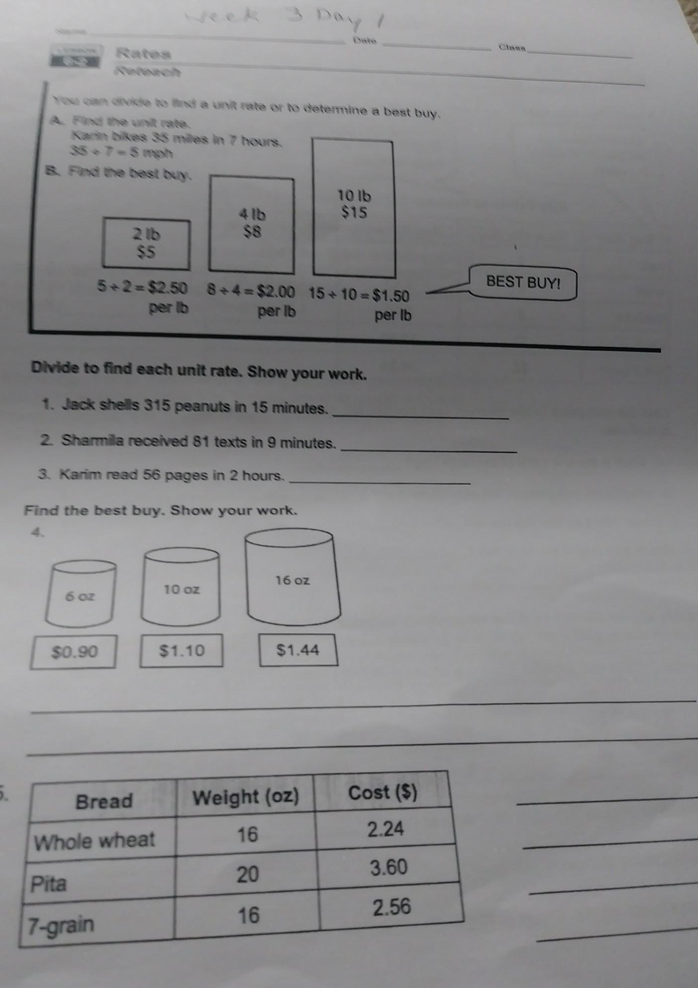 Unit rate is the ratio of two measurements, in which one measurement is one, therefore,
