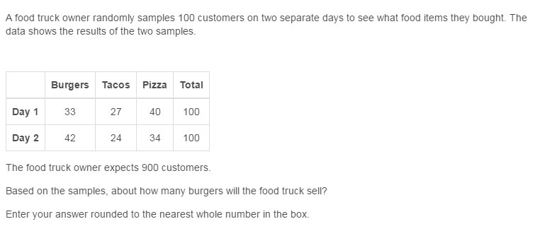 So, based on the samples, about how many burgers will the food truck sell?