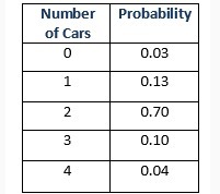 As show in the table, 0 - 0.031 - 0.132 - 0.703 - 0.104 - 0.04 Allyn surveyed the teachers she works with at GCA to find out how many cars they own. She created a probability distribution. The average number of cars owned by each teacher is 13 + 140 + 30 + 16 = 199 (the total number of cars) Assume that there are 100 teachers,So 199 / 100 = 1.99 So, technically the average number of cars owned by each teacher is 1 or 2