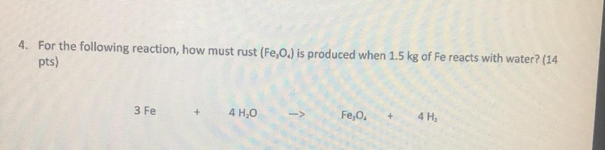 Determination of the mass of rust (Fe3O4) produced when 1.5kg ( i.e 1500g) of Fe reacted.