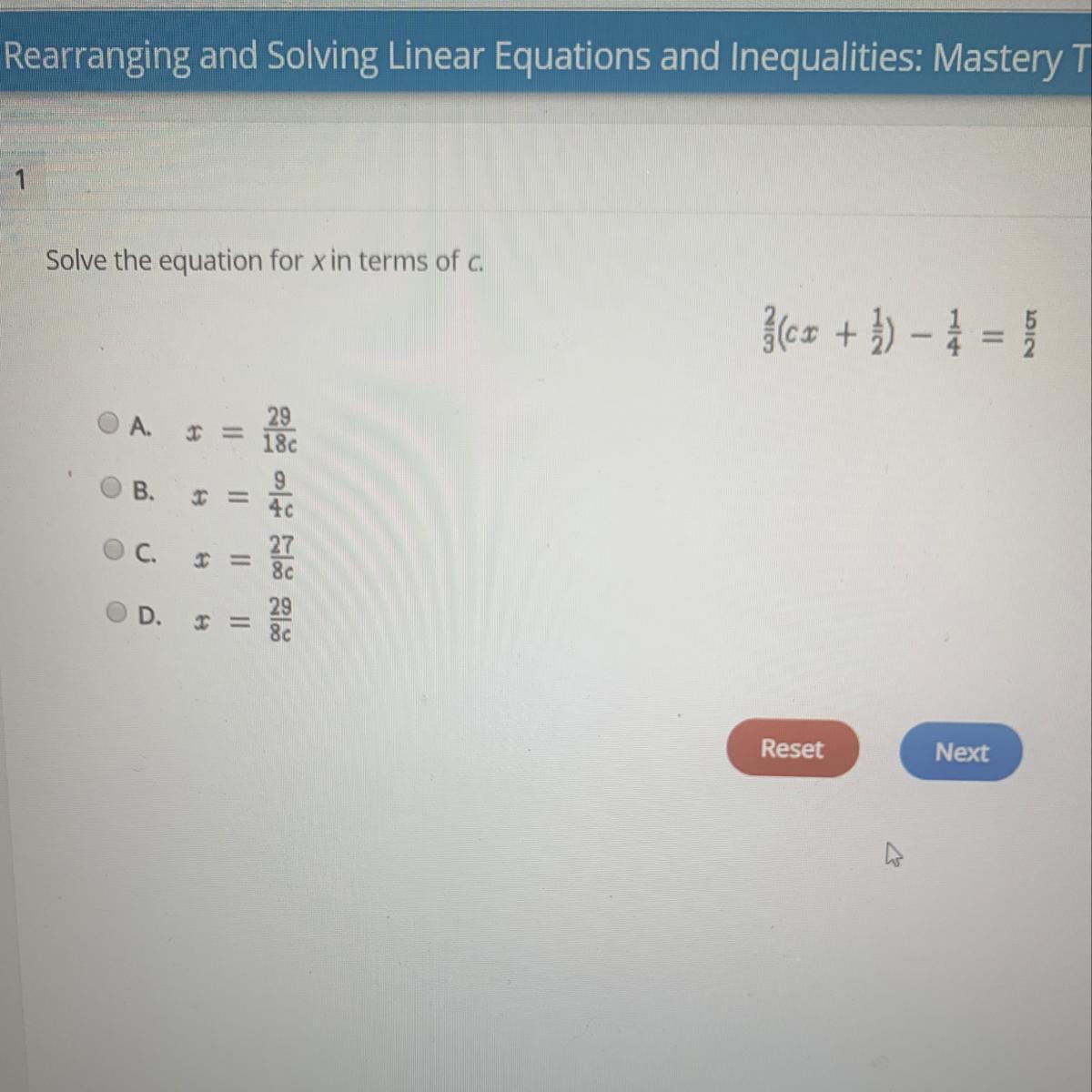 . Simplify to get x=