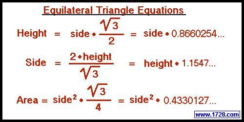 Area = side^2 * sqrt(3) / 4