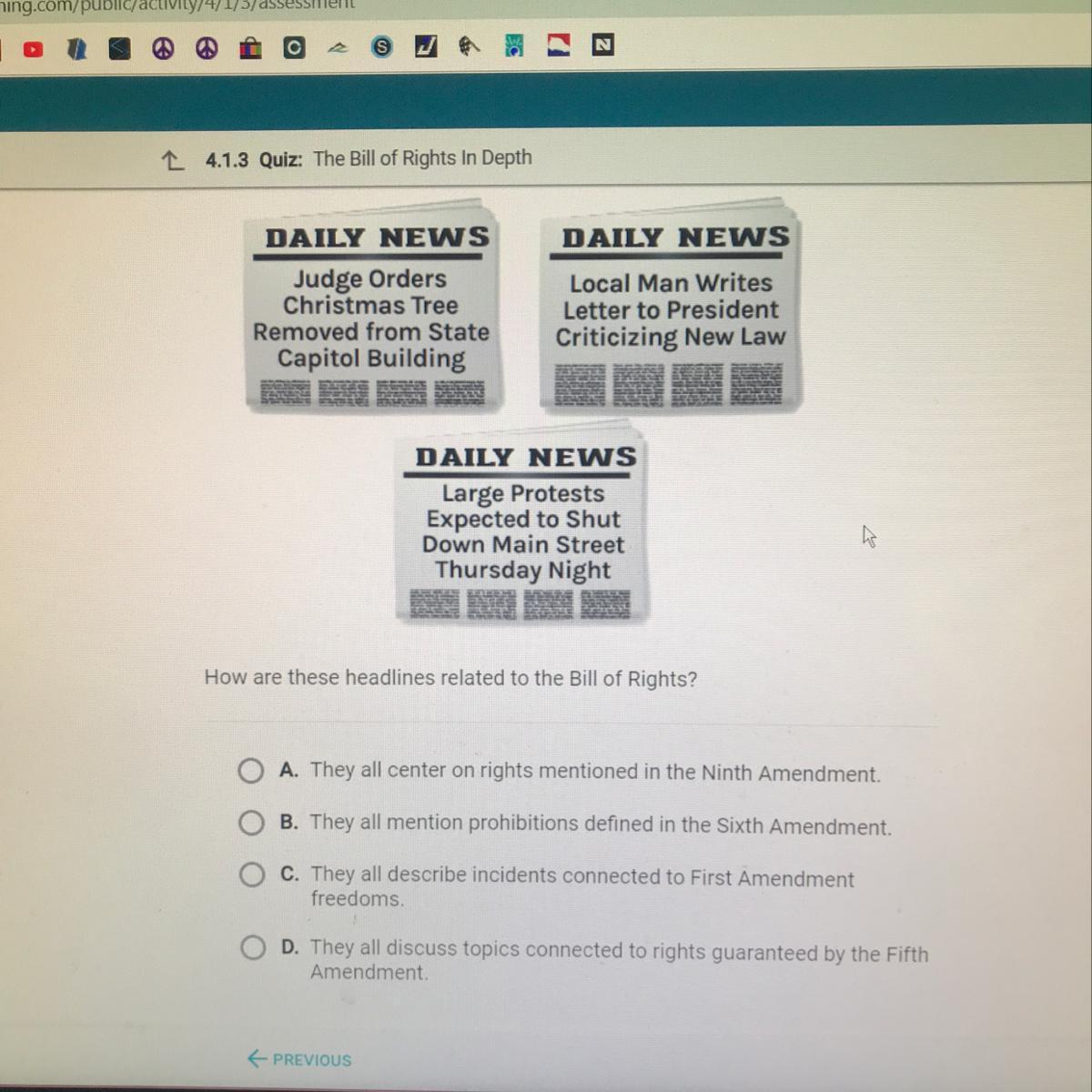 The first amendment grants the right to freedoms concerning religion, the expression of religion, the assembly of religion and the right to petition religion. It also forbids congress from promoting one religion over another as well as preventing the restriction of an individual’s religious practices.