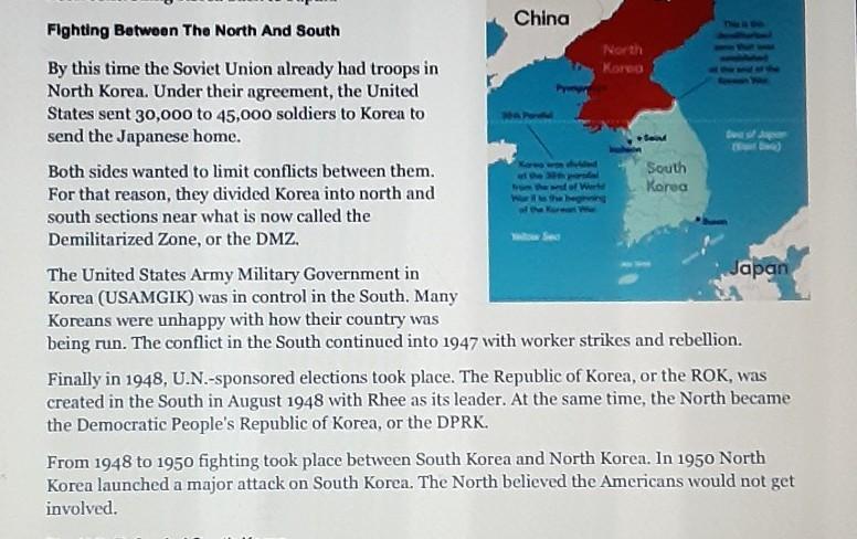 Unfortunately, the U.N. was not succesful in its efforts, and the war broke out in 1950, and lasted until 1953, with a great loss of life, and the permanent division of the Korean Peninsula in two countries: North Korea, supported by the Soviet Union and China, of communist ideology, and South Korea, supported by the United States, and of capitalist ideology.