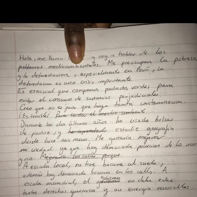 Hola, me llamo Brainz y voy a hablar de los problemas medioambientales. Me preocupan la pobreza y la deforestación, que especialmente en Perú, es un problema importante.