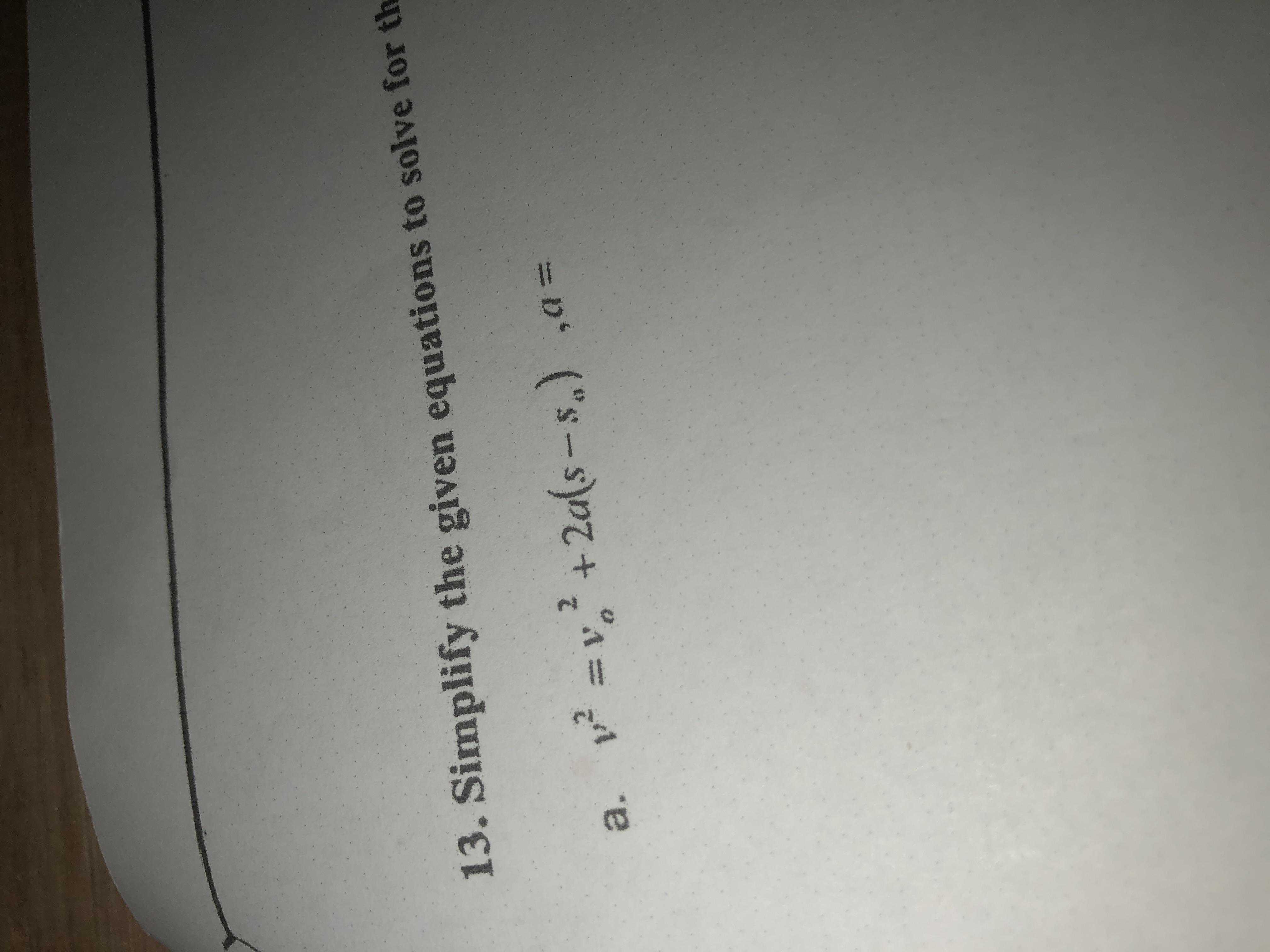 v² – v₀² = v₀² + 2a (s – s₀) – v₀²