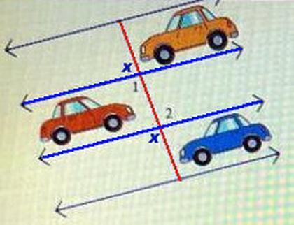 The blue lines are parallel, and the red line is a transversal.