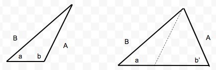 . One is acute, the other is obtuse. In the triangle on the right, the dashed side has the same length