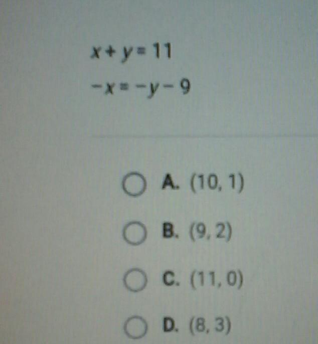 Subbing 1 for y in the first equation results in: x + 1 = 11.