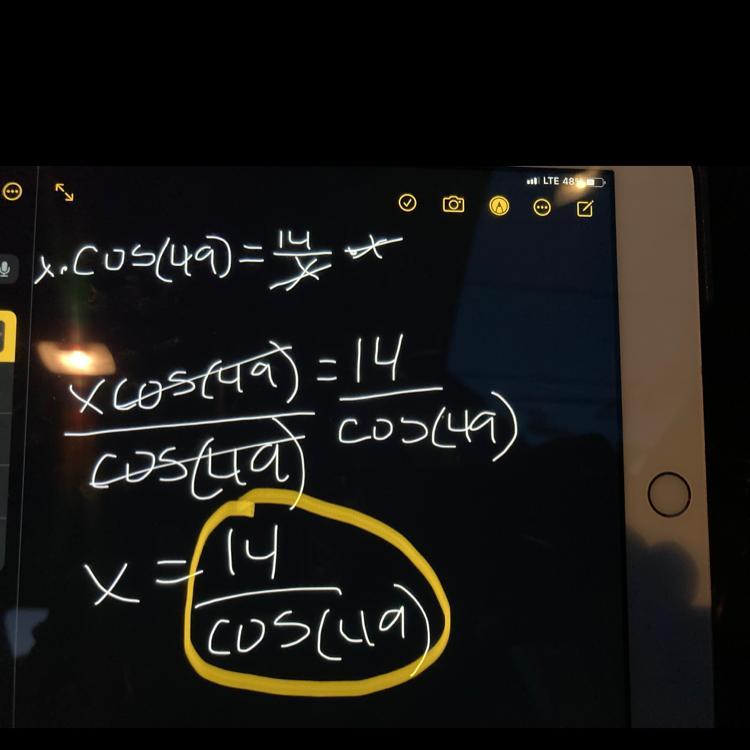 x • Cos(49)= 14/x • x.