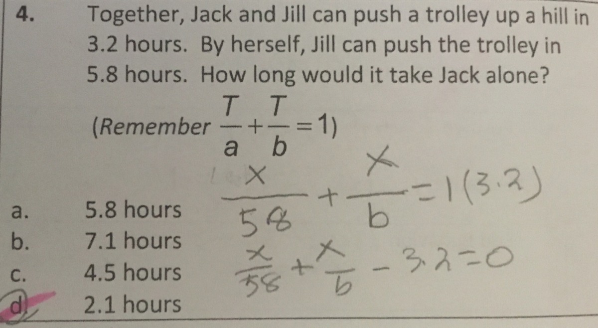 It will take Jack about 7.1 hours alone