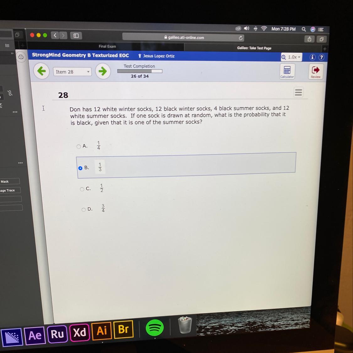 Don has 12 white winter socks, 12 black winter socks, 4 black summer socks, and 12