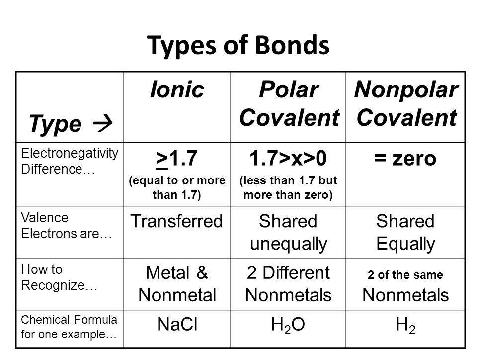 Keep in mind that a result of 1.7 or more, will let you know that it is an ionic bond ( as you can see in the image)