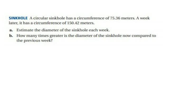 Kay. Now we have to figure out how many times greater Week 2’s diameter is than Week 1.
