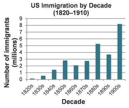 Correct B.) The graph shows that immigration had more ups than downs since there were mostly ups immigration increased since the 1820s.
