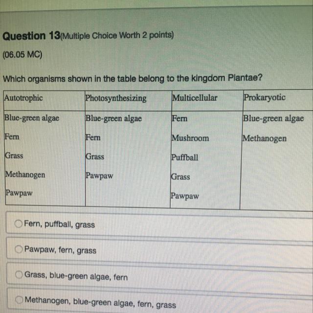 The pawpaw, fern, and grass are all part of the Plantae kingdom. They all share the same basic characteristics, and they all have a same distant ancestor. All three, even though they don't look alike a lot, are true plants, having well developed root systems, steams, and complex leaves through which they perform the process of photosynthesis. The ferns are the oldest of the three, having existed since the Carboniferous period, and they are plants that reproduce via spores. The pawpaw is part of the flowering plants, and these plants are much recent as they only occurred at the end of the Cretaceous period. The grass is the most recent of plants, occurring only around 25 million years ago, and it uses the nature to disperse its seeds and reproduce.