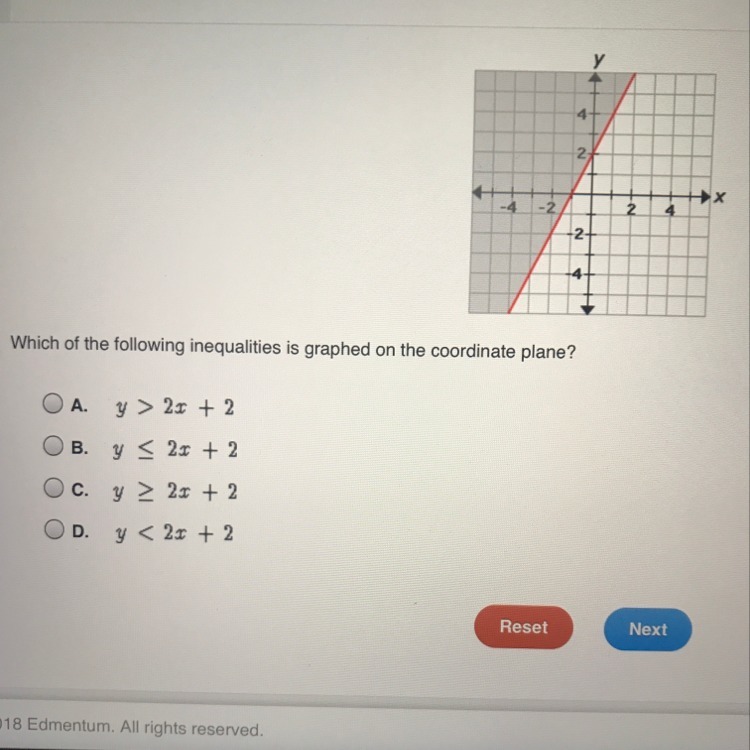 So, we get, y≥2x+2 will have the solution region graphed away from the origin.