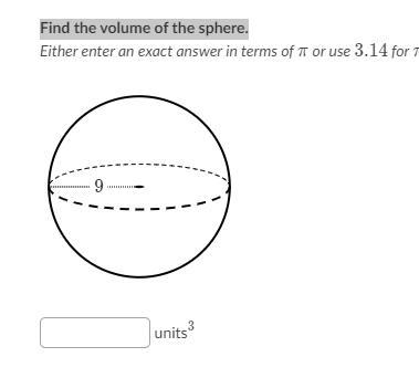 4. Lastly, since the answer needs to be exact, we have to not multiply pi, and solely stick it on our answer. In other words, multiply 4/3 and 9^3, which is 972, and stick the pi sign on the end, making the answer 972π.