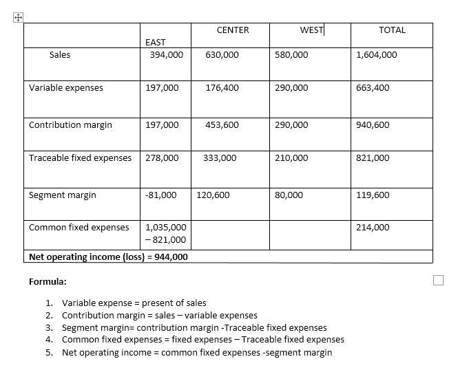Particulars Total East Central West