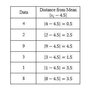 Step 2: Calculate the distance between each data point and mean.