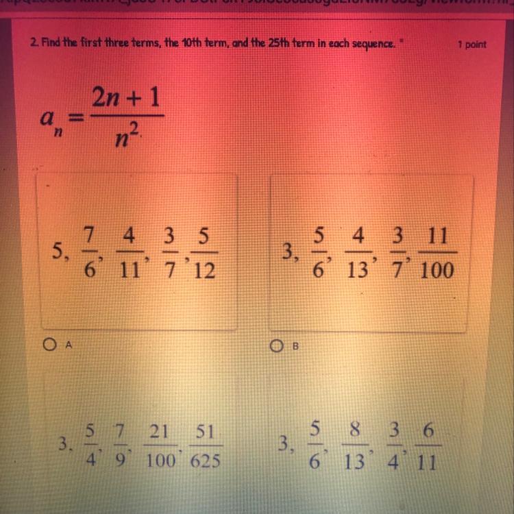 It is C. Substitute The number 1,2,3,10,and25 in the n position