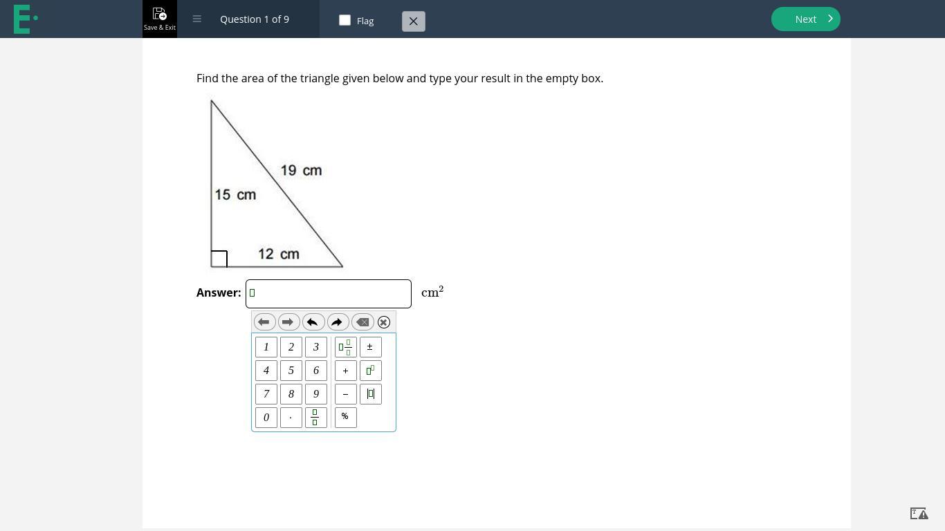 Area of a Triangle = h*b / 2 = (6ft * 4ft) / 2 = 12ft²