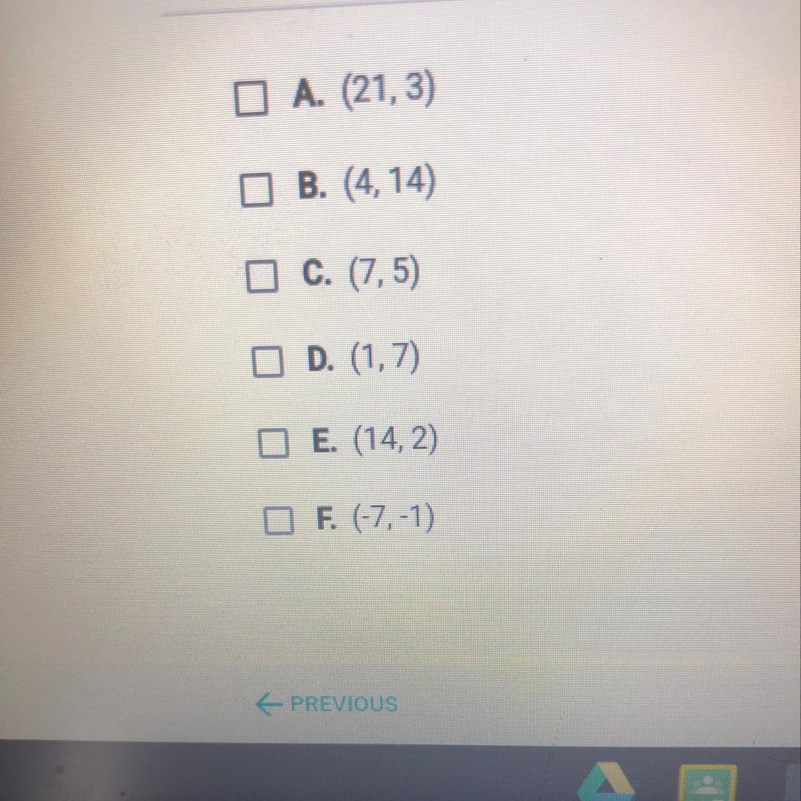 Select the ordered pairs that satisfy the equation y=1/7x. Check all that apply.