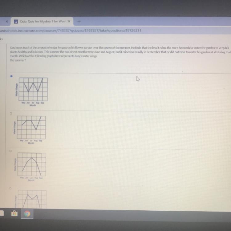 The clue is that he used very little water in September, so the graph where the line goes down in September is the best choice. The months of June and July should have the line higher since he used more water during those dry months.