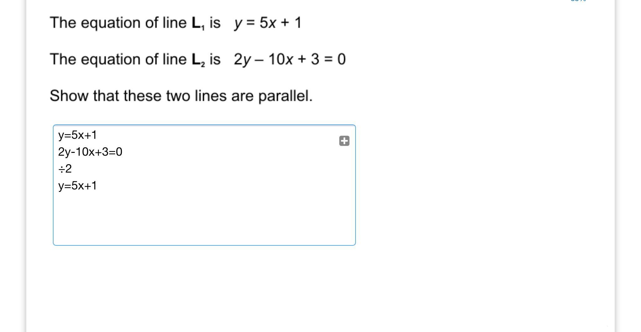 L2 has equation 2y - 10x + 3 = 0