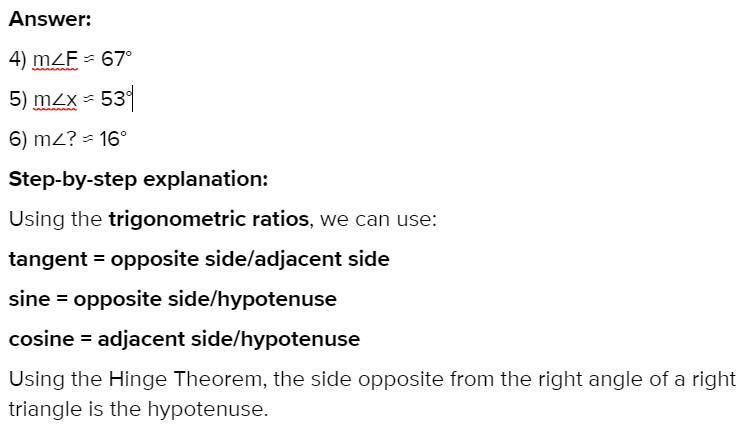 4) m∠F ≈ 67°