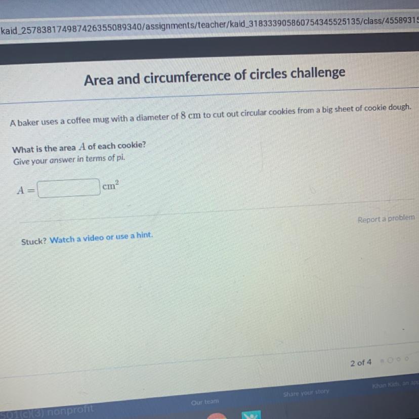 Since the diameter of each cookie is 8 cm, the radius of each cookie will be 4 cm. We can use the area of the circle formula (A = πr²), we can find that the area of each cookie is 16π, or around 50.26