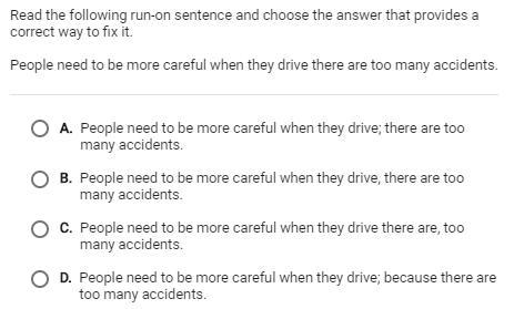 “People need to be more careful when they drive; because there are so many accidents” is not correct. Remember that semicolons are used to combine two INDEPENDENT clauses. Independent clauses are clauses that can stand on their own as an individual sentence.