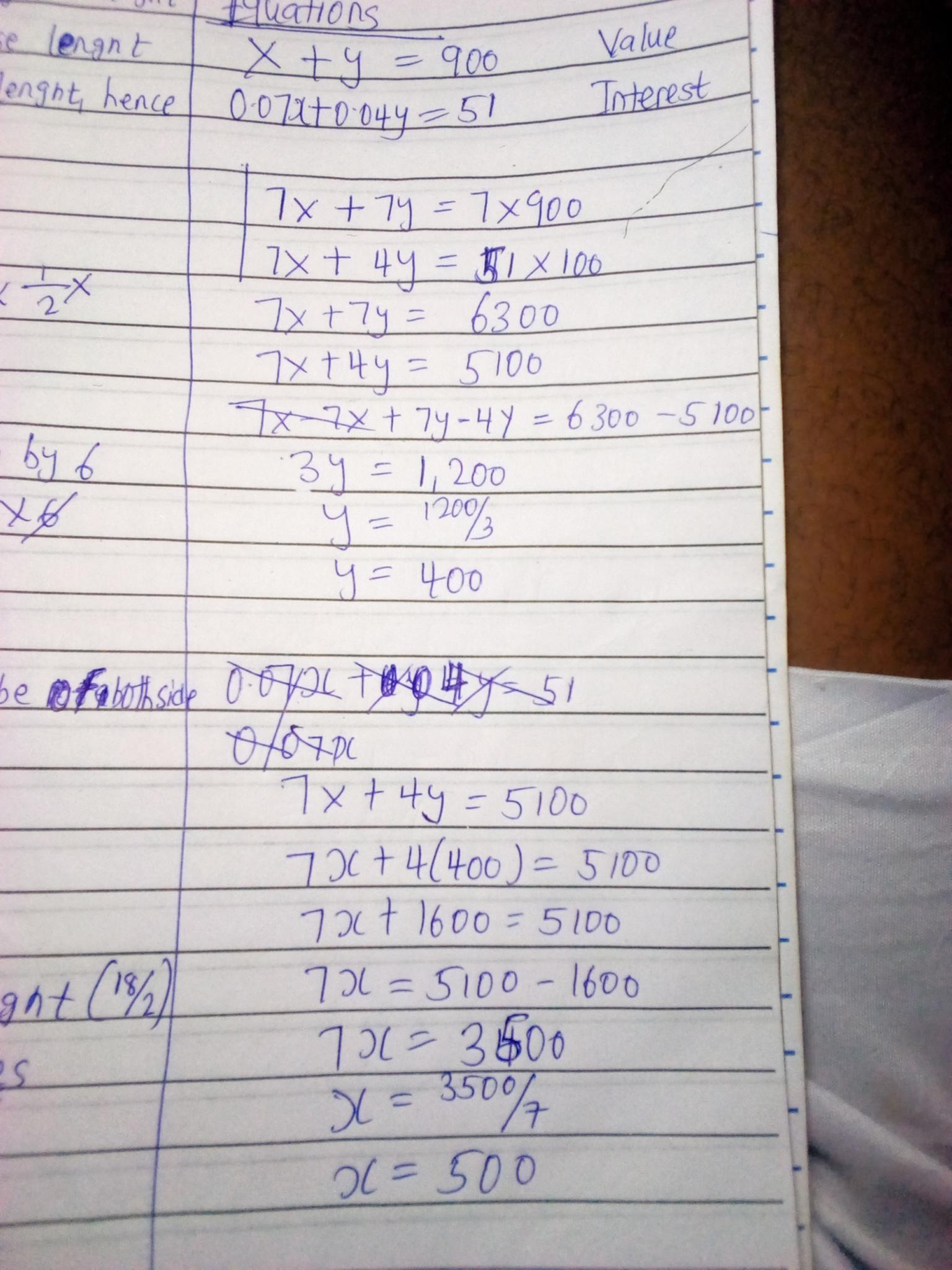 x = 500 (amt invested at 7%)
