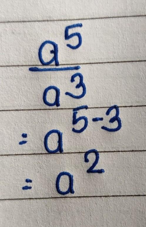 \:  \:  \:  \:  \:  \:  \:  \frac{ {a}^{5} }{ {a}^{3} }  \\  =   {a}^{5 - 3}  \\  =  {a}^{2}