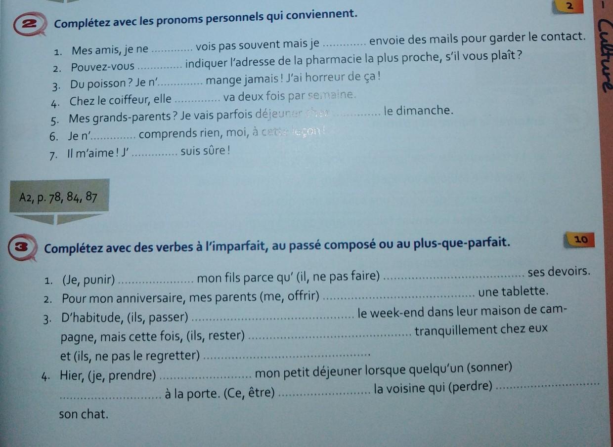So basically, your French teacher is having you rewrite the sentence, but with the addition of « ne...pas » surrounding the verb. For example, the fourth one would be « Non, je ne mange pas... » and then finish the sentence. You just have to remember conjugations (je, tu, il, elle, nous, vous, ils, elles). « ne pas » is like the English word “not,” as in: “I did not eat lunch.” In French, that would be « Je ne mange pas le déjeuner. »