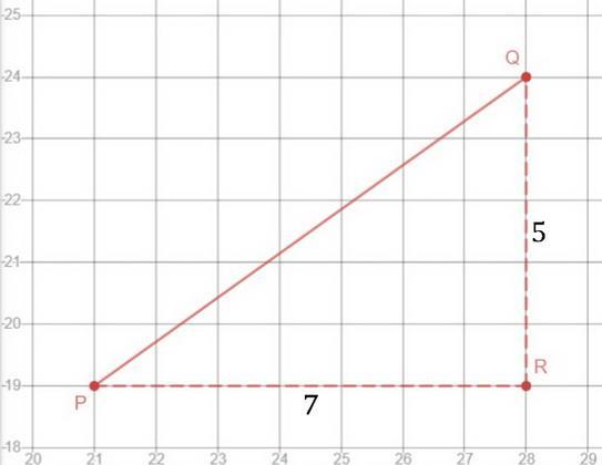 You could use the distance formula to calculate the length of PQ, but I prefer a visual approach, because it requires less memorization.