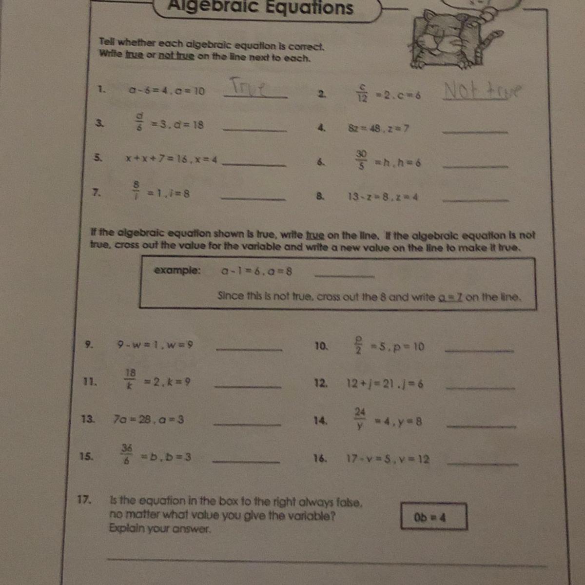 15. not true (b = 6)