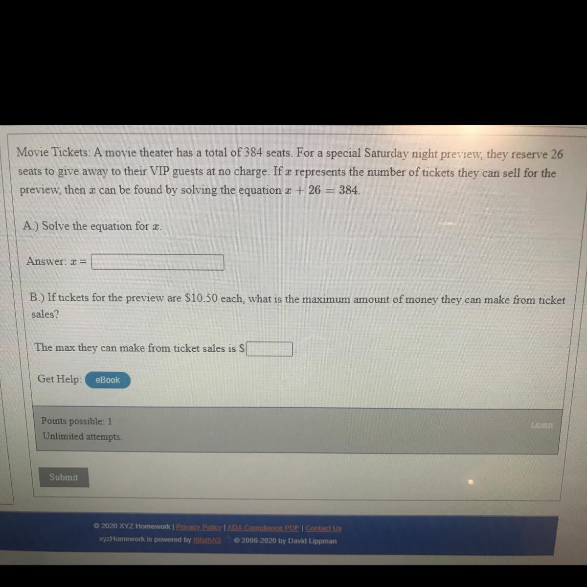 x = 16