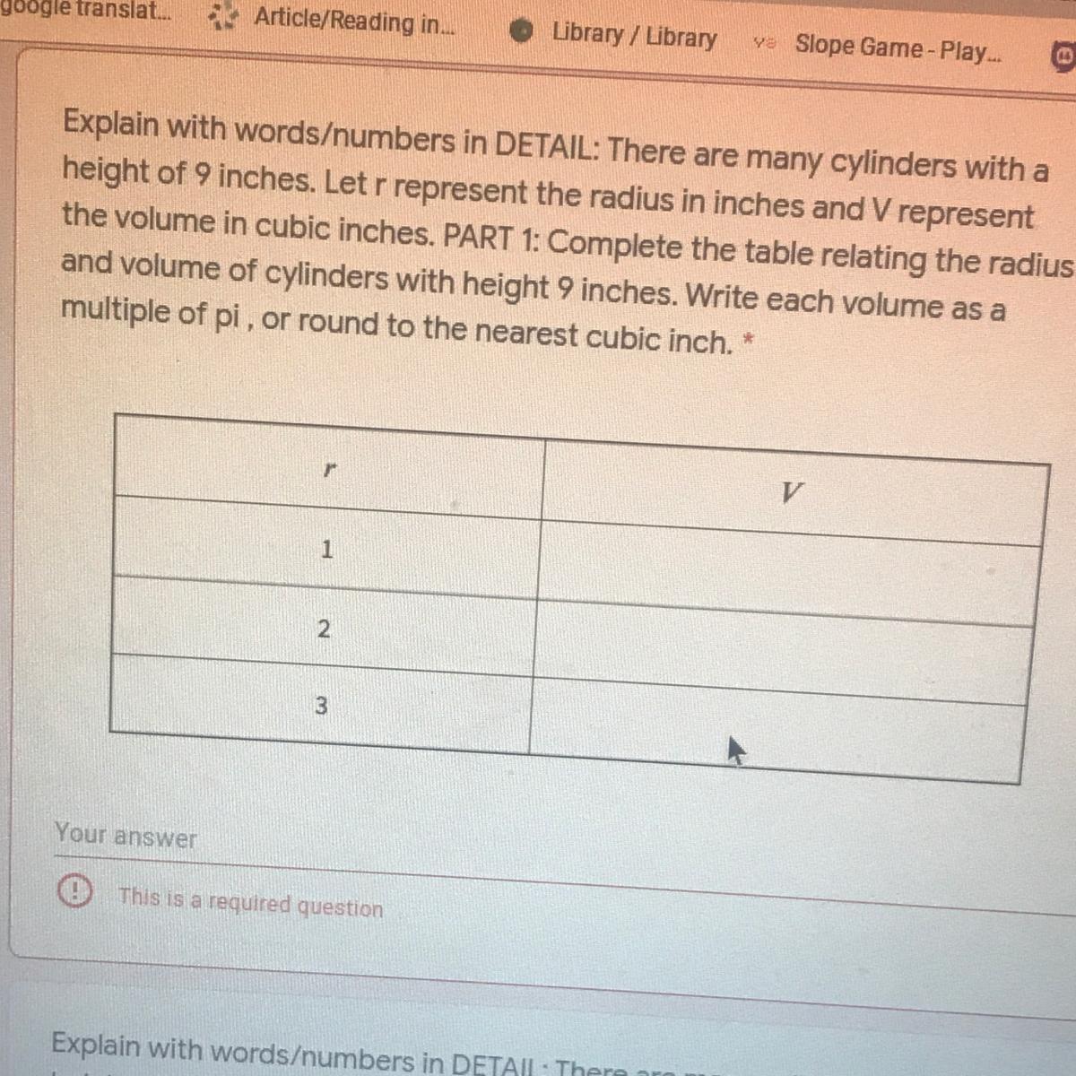 For a cylinder of radius = 3 inches;