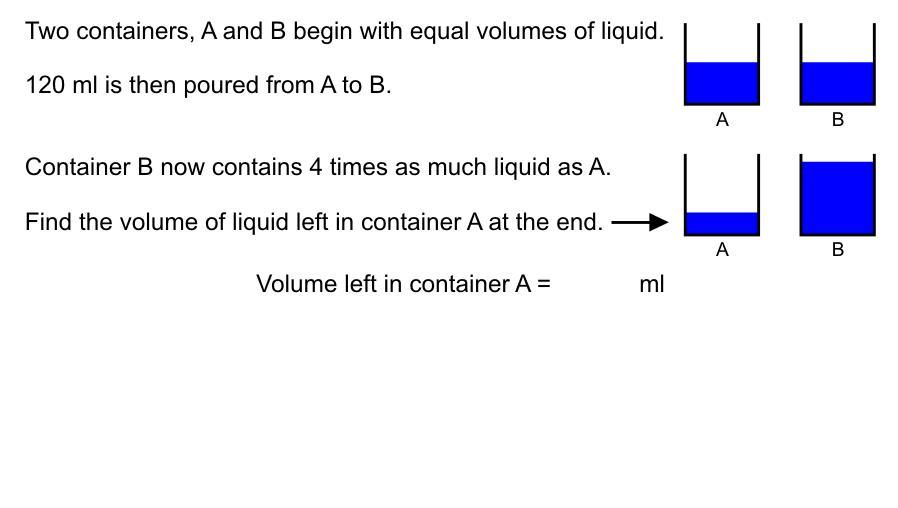 Therefore, volume of the liquid left in the container A will be 80 ml.