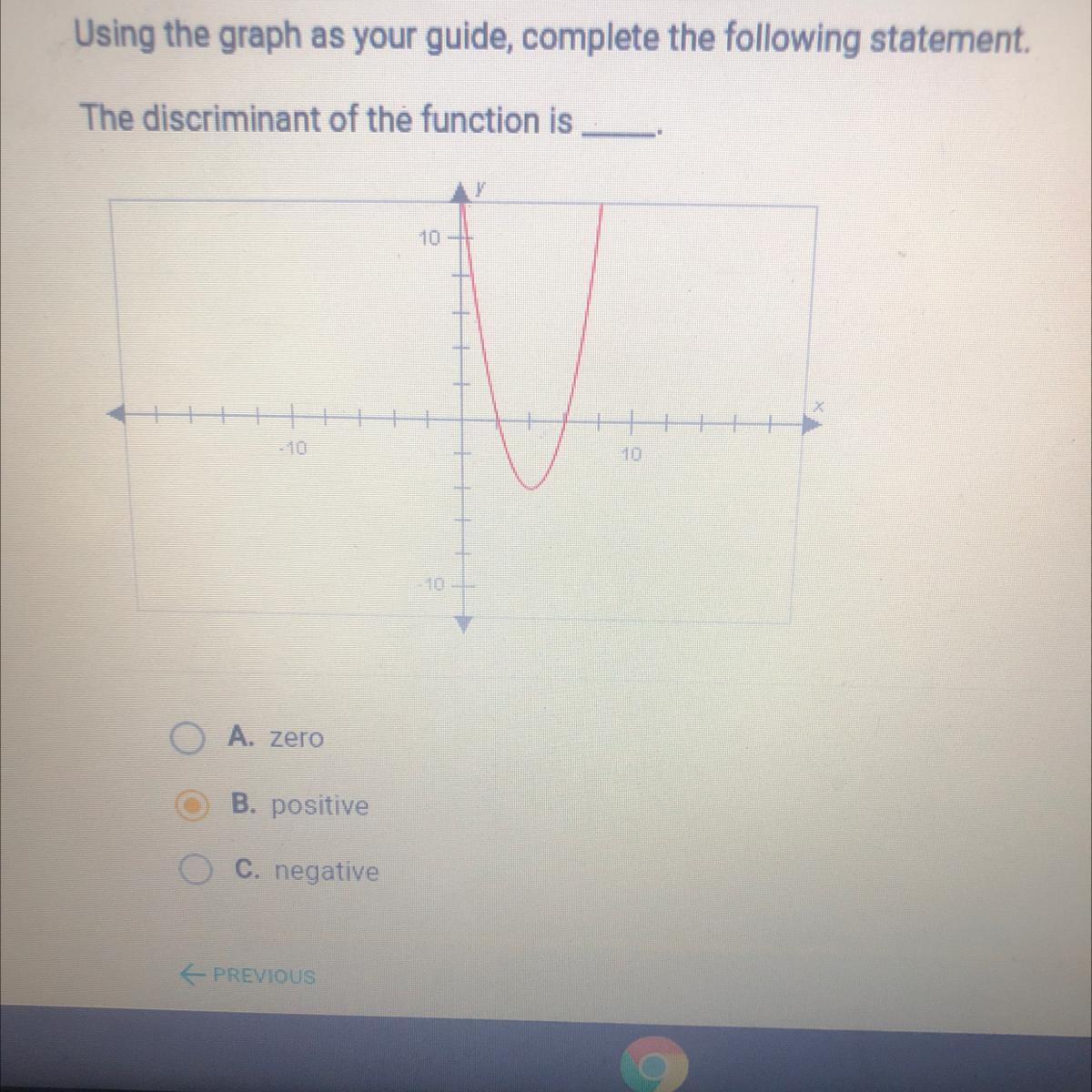 - If the function when graphed, intersects x-axis exactly on one point, discriminant of the function will be equal to zero.