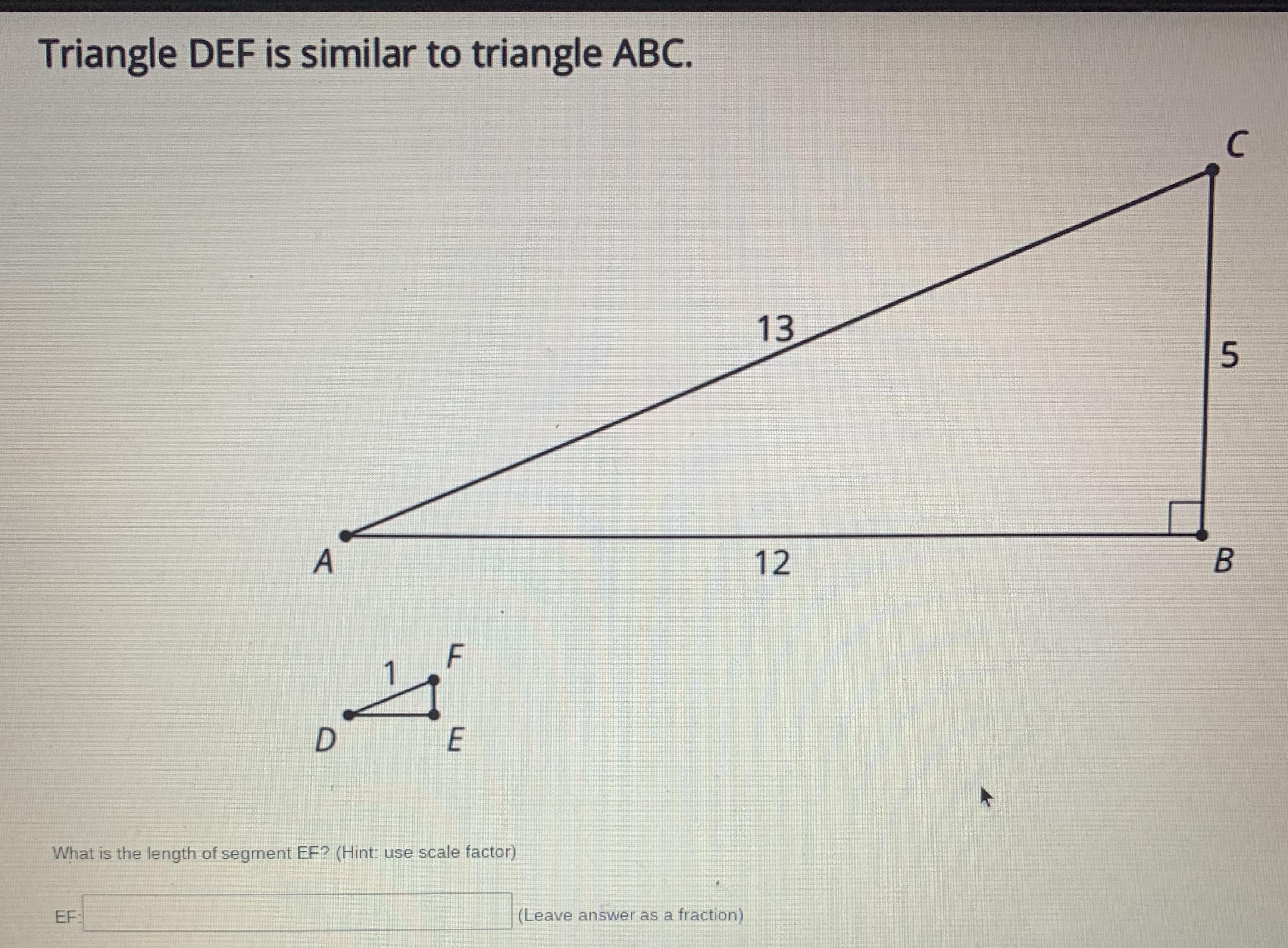 We have been given two similar triangles. We are asked to find the length of segment EF.