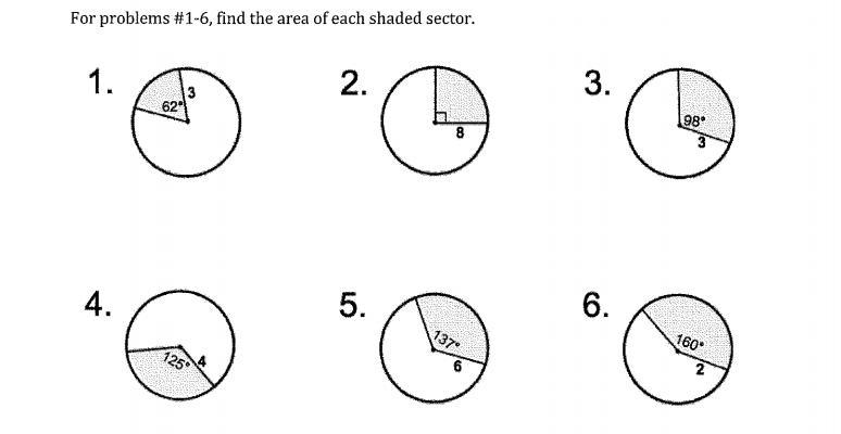 5. Area of Circle ⇒ π * r^2 = π * ( 6 )^2 = 36π,