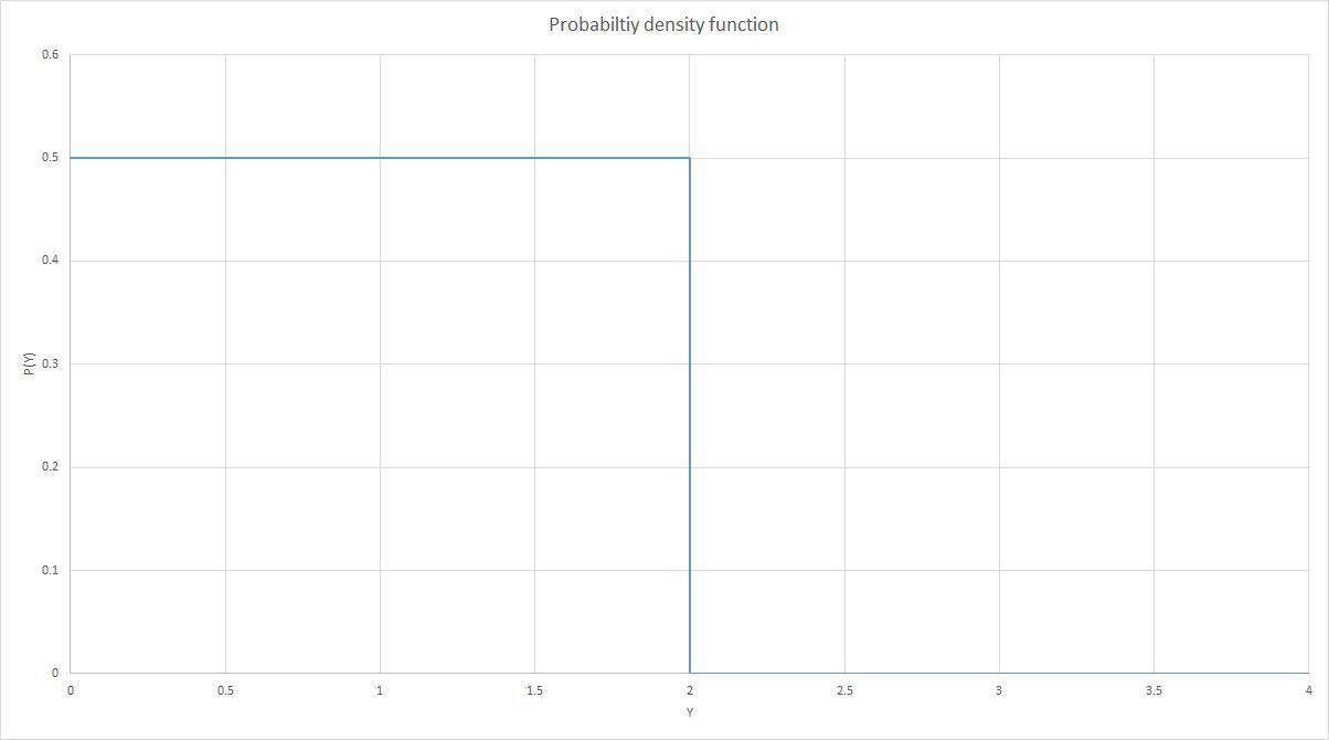 a) If the density curve of the outcomes has a constant height, we have a uniform distribution for values between 0 and 2 (outside this range, the density function has a value of 0).