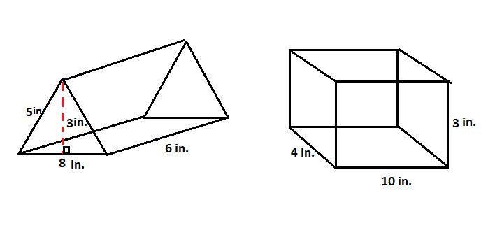 - Box B, the Triangular prism has a base triangle of base 8 inch and height 3 inch. The length of the triangular prism is 6 Inch