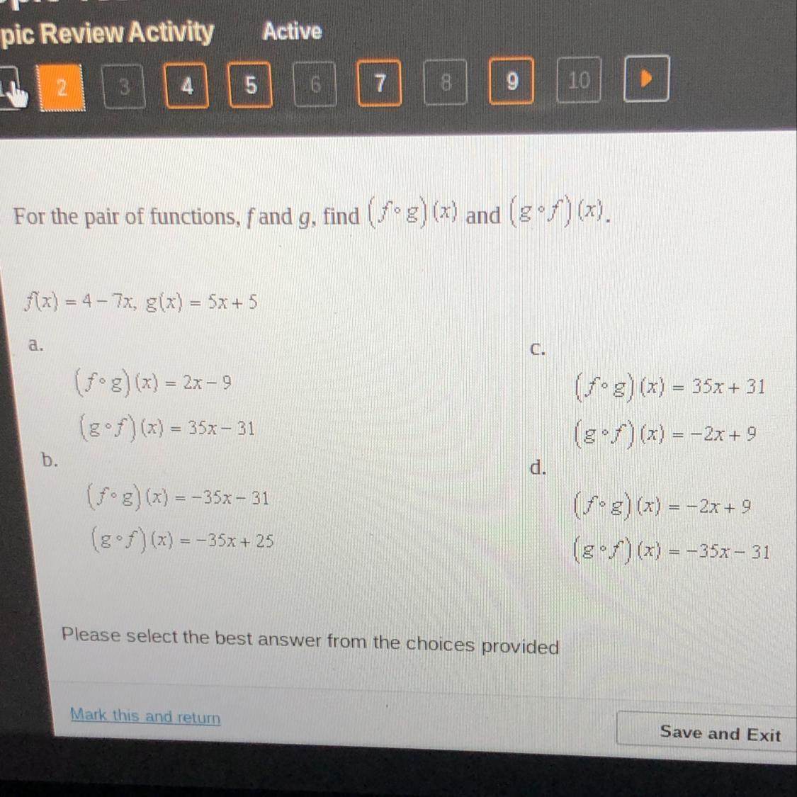 A.) is incorrect because g(x) symbolizes the input of the variable "x" into the g function.