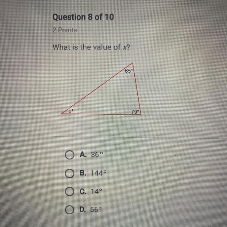 The 3 angles add to 180, so we know that x=36