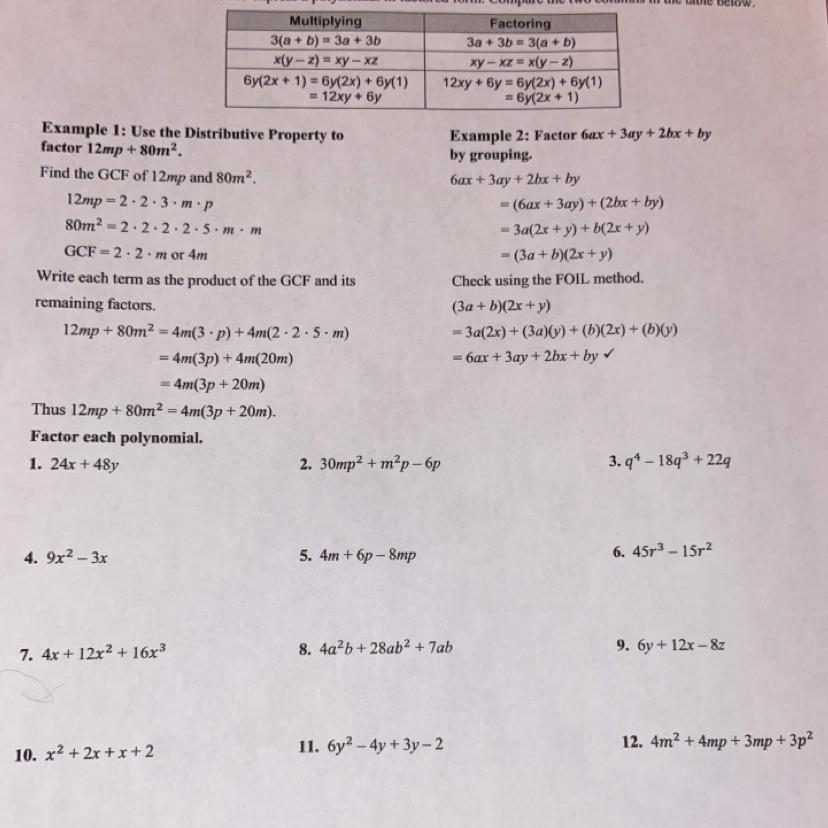 7. 4x (1 + 3x + 4x^2) 8. ab (4a + 28b + 7) 9. 2(3y + 6x - 4z)