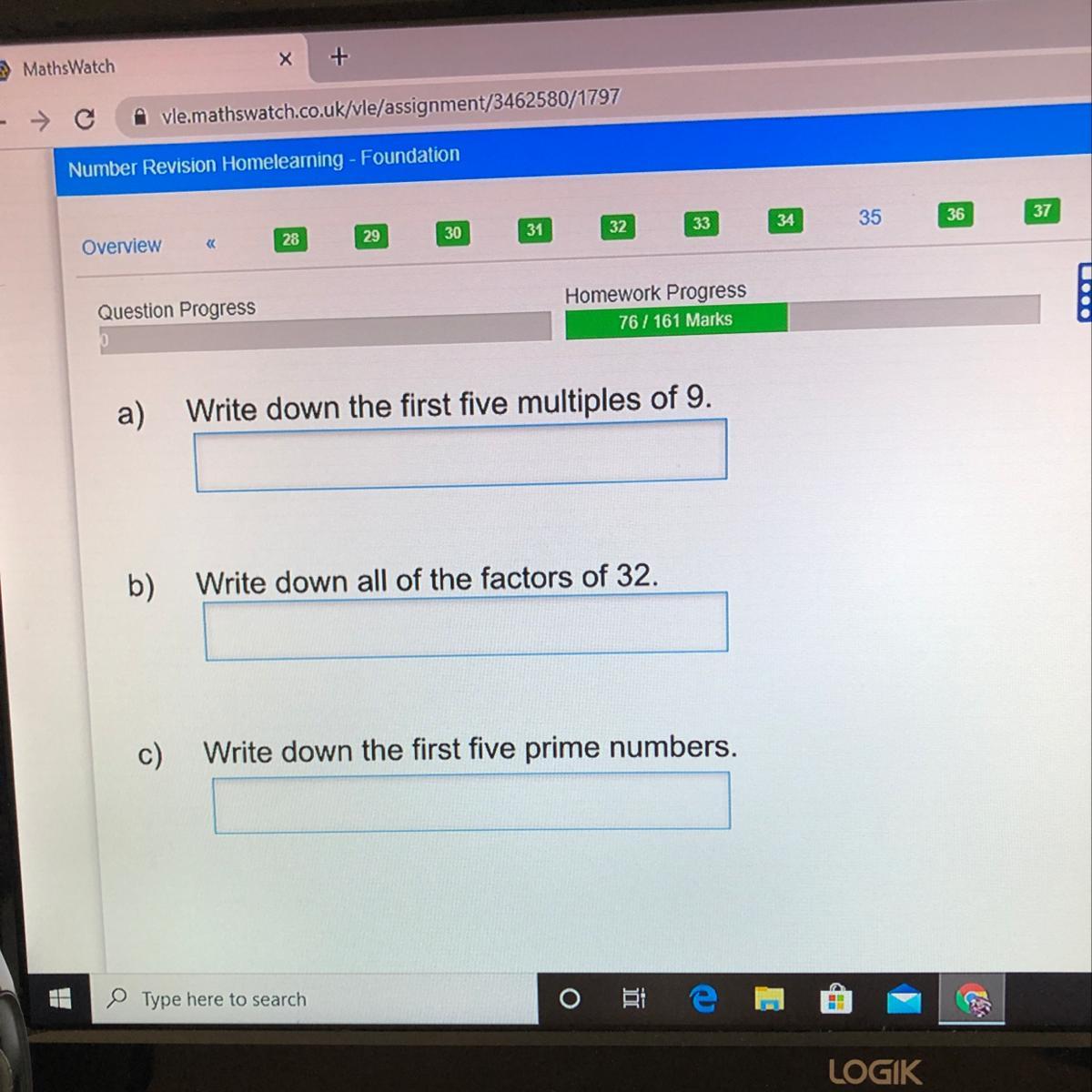 a) To find the first five factors, you just need to multiply nine by 1, 2, 3, 4, and 5 and there are your answers :)
