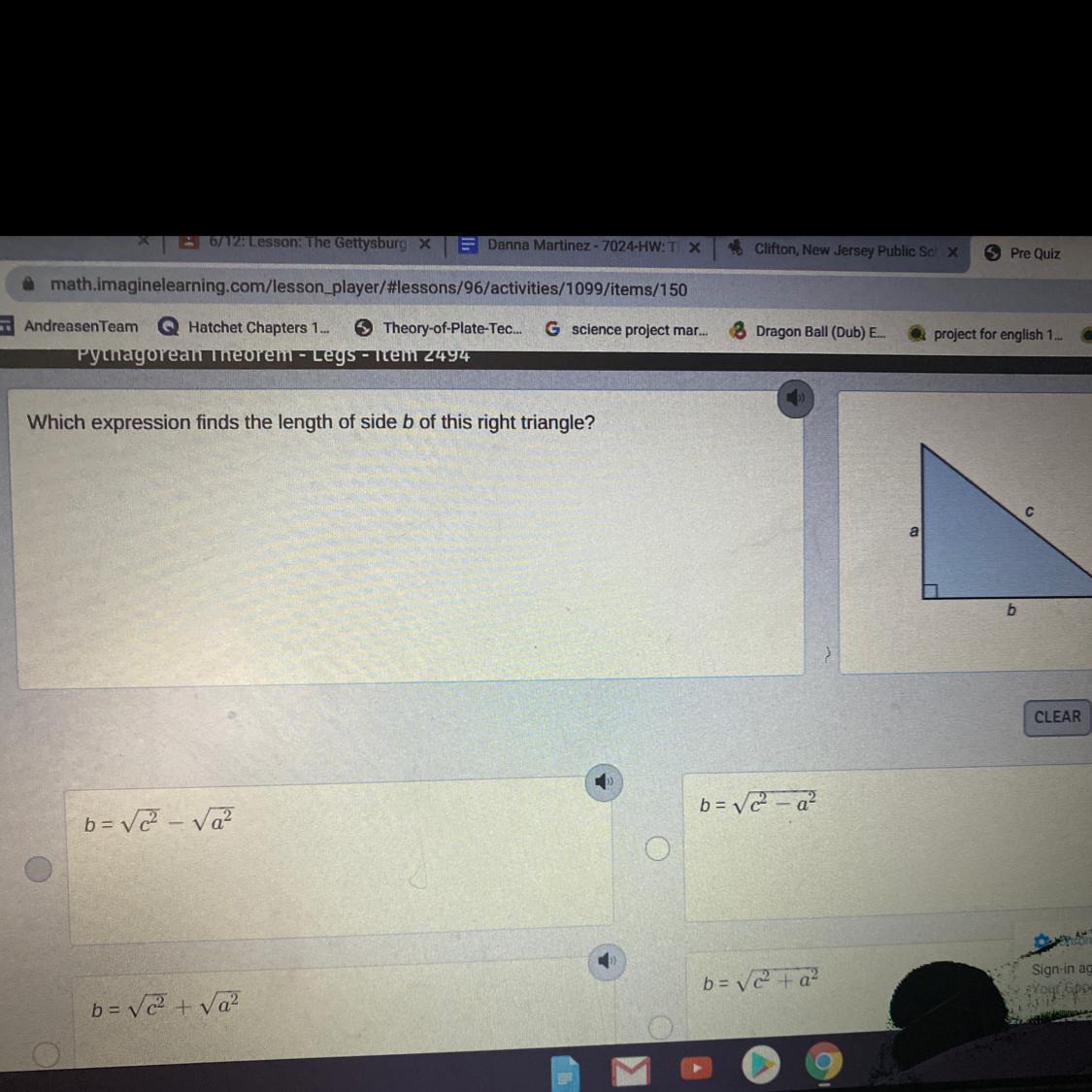 • Click an item in the list or group of pictures at the bottom of the problem and, holding the button down, drag it into the corre